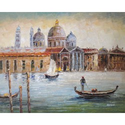 Ręcznie malowany obraz olejny za pomocą szpachli! Kompozycja przedstawia pejzaż wenecki i charakteryzuje się piękną tonacją kolorystyczną oraz wyrazistą strukturą farby olejnej. Niepowtarzalna ozdoba wnętrz mieszkalnych!